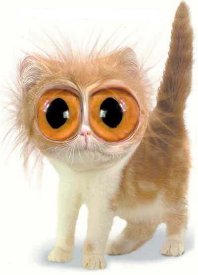 OH MY GOD this has to be the strangest looking kitten ...ever! I want to stick a hundred of them together and make a massive bean bag! | |