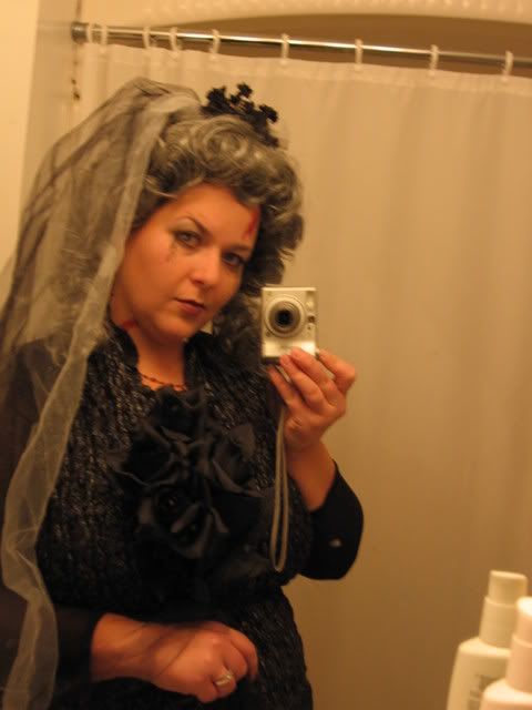 i've only just got the last of the glue off my eyelids so don't think i will put them back on to give out candy lol and i will try to make my makeup look more zombie like btw that's a bullet hole on my forehead... my fiance caught me with the best man ![]() | |