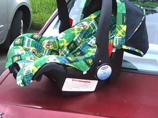 i got the baby car seat recovered for a boy, finished this morning at 1 am!!! and the baby was born this afternoon!!! 8 lbs 1 oz 21 and a half inches long Kadien Daniel...
