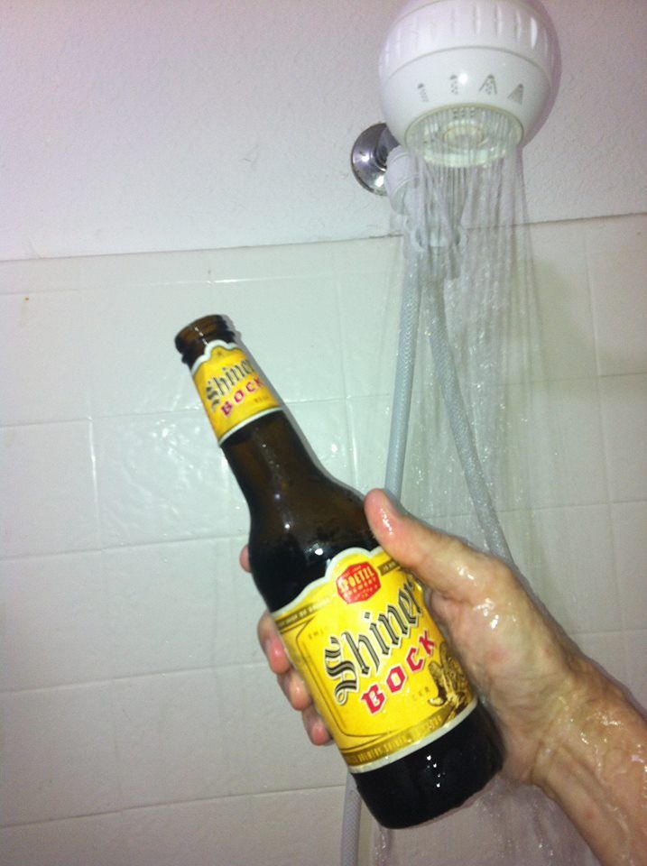 I've never done a shower beer, but hot bath beers are definitely a standard. There's nothing better. Ὅσον ζῇς φαίνου