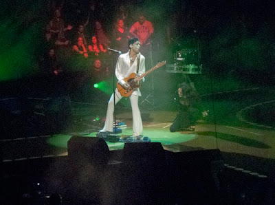 PRINCE’S THURSDAY SHOW SET LIST FROM ORACLE ARENA- OAKLAND: THE LOVE WE MAKE (Not the song I thought he’d open with, but I’m happy he did it!!) TAKE ME WITH U ANOTHERLOVERHOLEINYOUR HEAD SHHH PRINCE takes off under the stage and the beautiful SHELIA E. appears in a white goddess style dress playing her kit and rocking the house as we all sing along and say “la la la la la la la” to the beat of GLAMOROUS LIFE!!! She is BAD, bad meaning good of course! LOL– she was playing with all her heart and even was using her elbows on the kit and even ended up kicking her stand over as to say…. “what you got!” A LOVE BIZARRE (PRINCE & Shelia E. was magnetic again tonight! I wish they’d just get married already! LOL– they just have that chemistry that works and they feed off each other well that you always want more and more! PRINCE said, “Shelia E’s so funky she can’t sleep with herself!”. LOL– then all 17,000 of us were singing along, “A, B, A, B, C, D…. The moon up above, shines down upon our skin…” Aaaaaa– I lost it right there!!! )